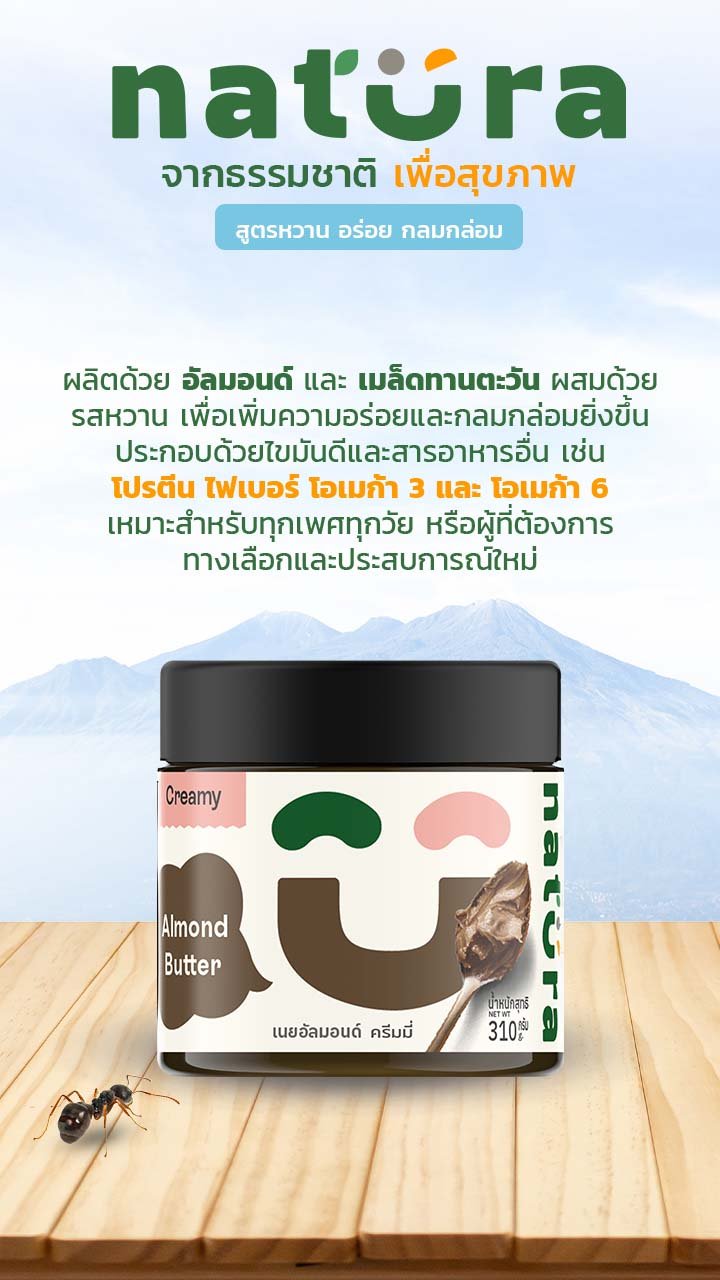 เนยอัลมอนด์ ครีมมี่ (รสหวาน) (Almond Butter Creamy) น้ำหนัก 310 (g.)