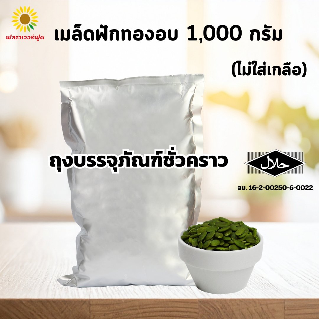 Flowerfood เมล็ดฟักทองอบ กะเทาะเปลือก ใช้เป็นวัตถุดิบในการทำอาหาร และขนมได้หลายชนิดผ่านการทำความสะอาดเรียบร้อย บรรจุในถุงฟอยด์ชนิดหนา ซีลปิดสนิทอย่างดี หมายเหตุ สเปควัตถุดิบสำหรับทำเบเกอรี่