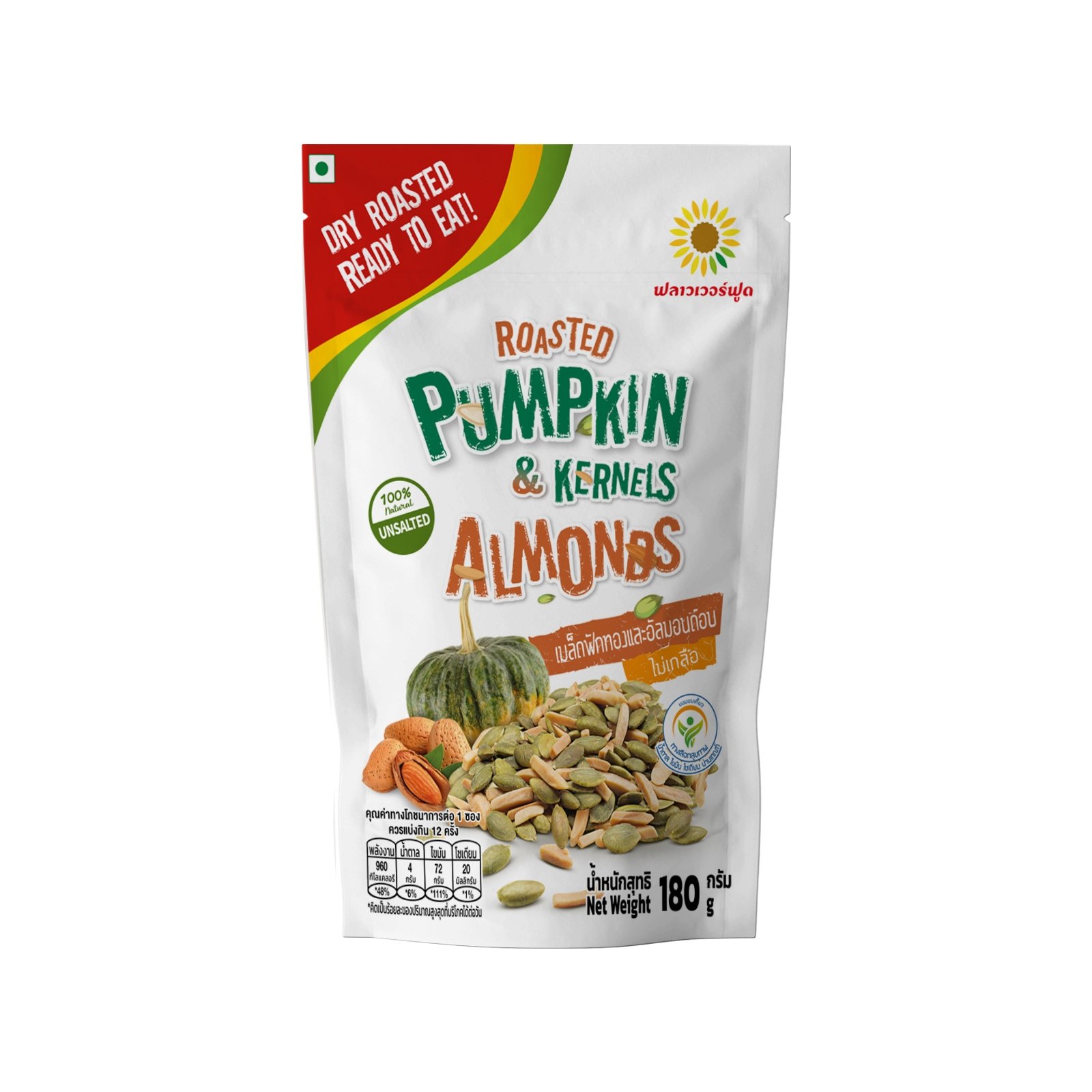 (2 แถม 1) เมล็ดฟักทองและอัลมอนด์อบ ไม่ใส่เกลือ 180g.