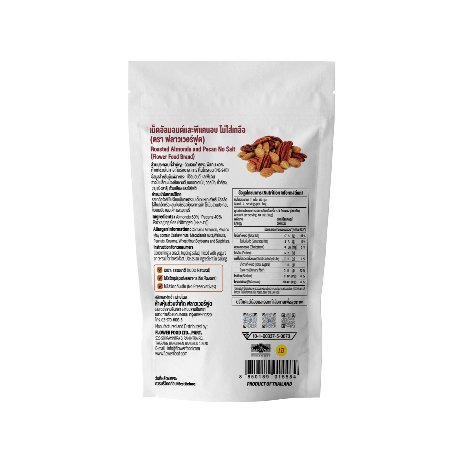 (2 แถม 1) อัลมอนด์และพีแคนอบ ไม่ใส่เกลือ 200 กรัม